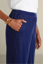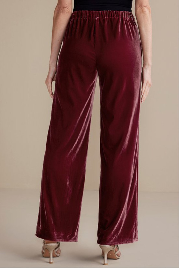 This seasons wide leg pant trend looks especially elevated and luxe in our signature velvet. Divinely soft and drapey, this flowy pair feels amazing caressing your skin. The flat front design is sleek and comfy with an elastic back waist and on-seam pockets.