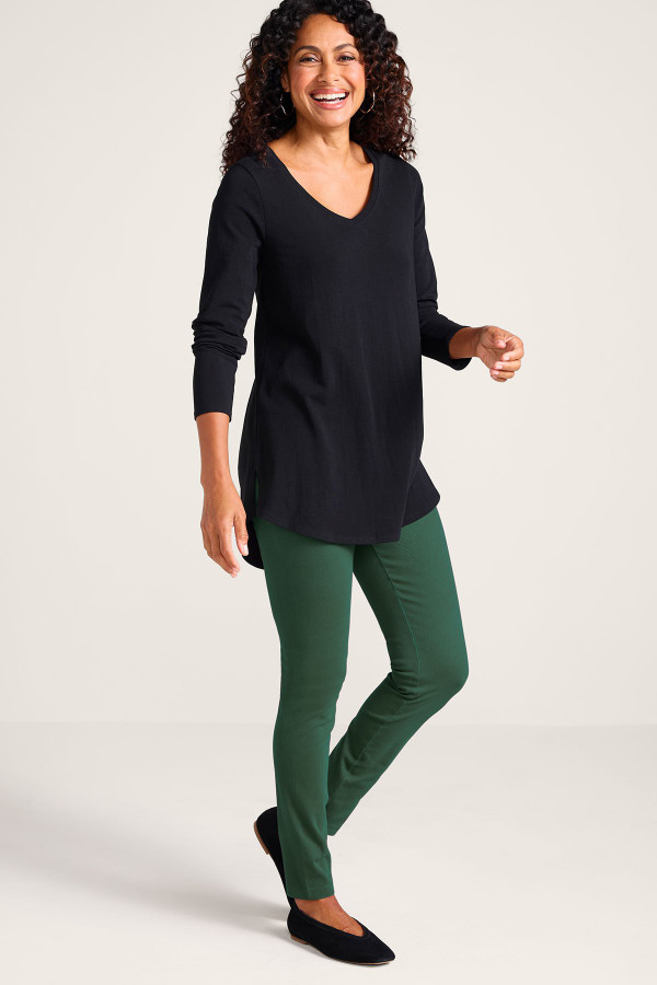 • Misses 28" Inseam, 10" leg opening; Petites 25", 10" leg; Women's 28", 12" leg. Sits at natural waist.