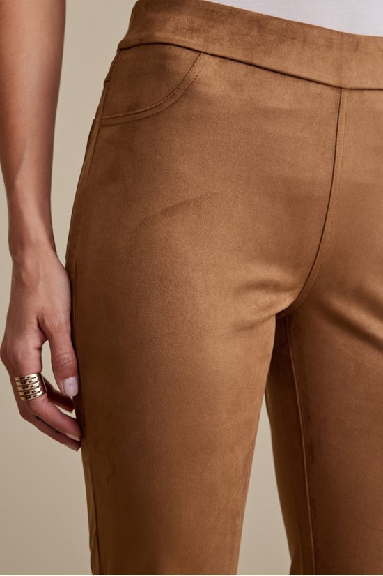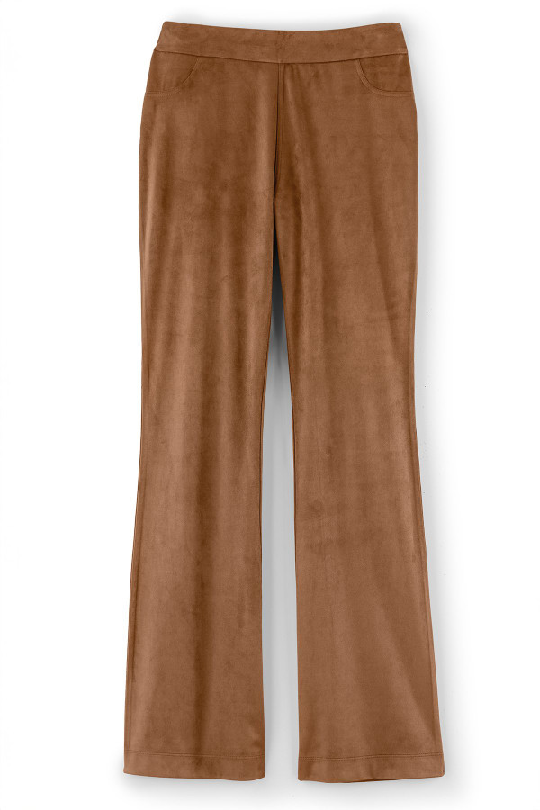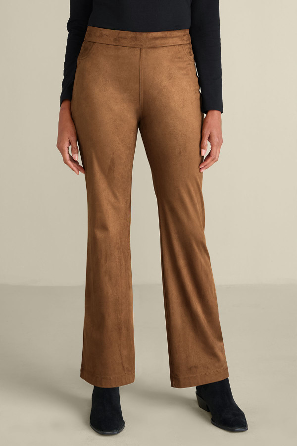 It's the season of suede and our faux version of this fall staple is the softer, drapier, easier-care choice for any day. The bootcut silhouette is an autumn essential, and this pull-on style keeps it sleek with front faux J-pockets for the slimmest look. Functional back pockets.