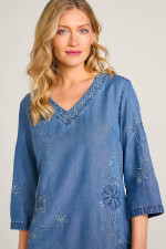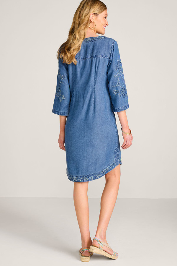 Floral Embroidered TENCEL™ 3/4 Slv Dress