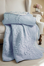 You're winding your way around the wares of a French market. A quilt catches your eye. The needlework is impeccable, the materials fine. And the style is trapunto - stuffed little pockets that create a raised vine motif. It's a must-have. And now you can. Our quilt and matching sham (Sold Separately) are modeled precisely after the one we found in St. Rmy. The pieces are reversible to a French ticking vertical stripe. The more you wash it, the closer it will get to the glorious vintage original. From the oversized ties on the sham to the scalloped edge on the quilt, this ensemble is nonpareil.