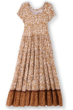 This maxi dress in lightweight rayon challis features a softly scooped neckline and easy cap sleeves. The fabric flows into a tiered skirt, creating a silhouette that moves freely and flatters. Perfect for casual days, weekend activities, or relaxed springevents.