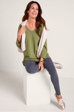 It's the best of both worlds: a swingy pullover that's comfy as a sweatshirt, with a feminine silhouette that twists into a keyhole opening in back. Smooth and soft French terry is trimmed with reverse seams; 3/4 sleeves.