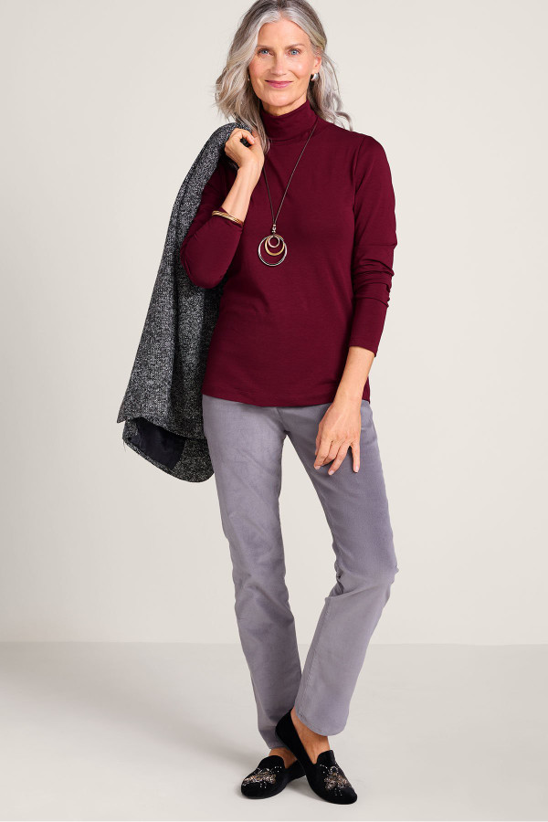 Your most versatile layering essential, this long sleeve turtleneck top is made of the softest Pima cotton – and features a hint of stretch for the most comfortable fit. Wash after wash, it holds its color and shape, making it a piece you'll turn to time and time again. Dress it up or dress it down for effortless styling.