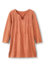 Soft-washed with subtle texture, this slub knit tunic has a framing, split U-neckline and pintuck accents at the front body. We finished it with 3/4 sleeves and side slits at the longer length hem for easy styling.