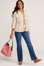 Mixed Media Btn Front Peplum Jacket