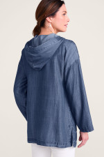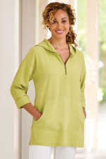 This TENCEL™ tunic in soft, drapey lyocell brings relaxed ease to your day with a hooded design. The half-zip placket, dropped shoulders, long sleeves, kangaroo pocket, and side slits complete the comfortable, casual styling. TENCEL™ is a trademark of Lenzing AG.