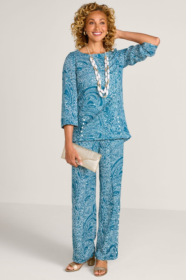Breathable with a luxe drape, our lightweight Oceo Gauze has a naturally crinkled texture. Mix, match and pack no ironing needed. Pull-on elastic waist, front pockets and button accents at hem. Create a look with our matching Oceo Gauze Tunic (2EW85).