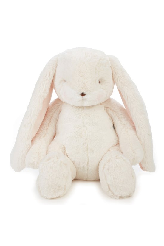 The cutest cuddle companion, this sweetest bunny plush is sure to be a comforting bedtime friend and a lifelong treasure. Made of the softest faux fur in a whisper of cream and warm white to blend perfectly in baby's room. Every stitch of detail is hand-embroidered from the eyes, nose, mouth and rosy cheeks to the big fluffy tail. Free from buttons or removable features to keep it baby-safe. Backed in velvety velour, the extra-long ears are so soothing to pet and just right to add a personal monogram.