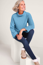 Bouclé knit gives this casual-chic top a touchable texture; long, dolman sleeves and an A-line shape provide easy comfort. Topped with a relaxed cowl neck.