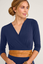 Soft and drapey, this stretch knit design is the perfect one-and-done style. You need only add your own special touch: a stylish belt, statement jewels, or maybe a jacket. The surplice V-neck flatters along with a defined waist and on-trend wide legs. It's a flowy, fun look that's ready for entertaining or a night on the town. Belt not included.