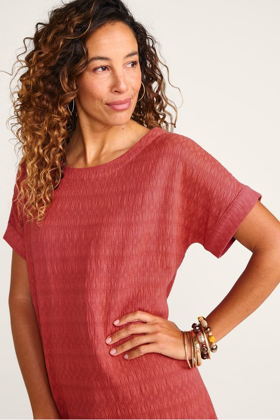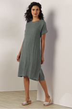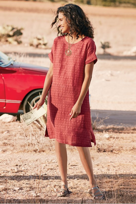 Natural gauze crinkle lends a rustic edge to this slipover shirt dress. Airy and light in a linen/cotton blend. Detachable, cotton voile cami slip.