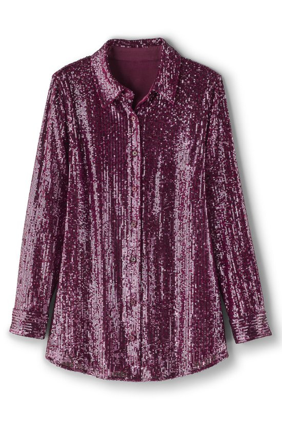 This soft and lightweight button-up sparkles with personality from thousands of golden micro sequins. It's a shimmery, easy boyfriend style to wear solo or layer over a tank. Too exquisite for fancy nights only, wear it with jeans any time you want to shine.