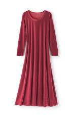 Relish the sophistication of velvet in our iconic Santiago maxi dress. Long sleeves to keep you cozy through the cold with elegant drape and a modest scoop neck.