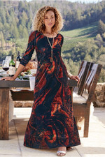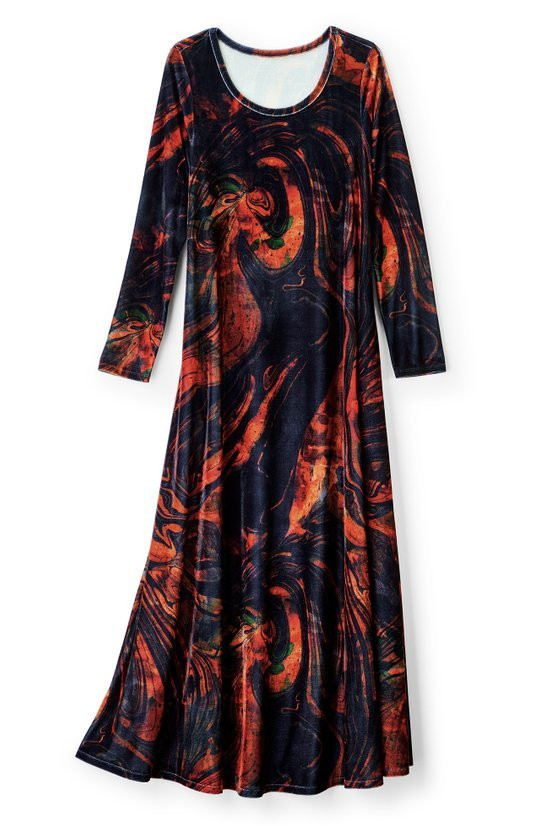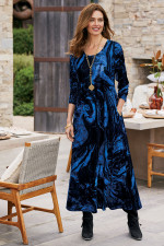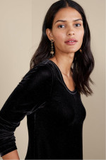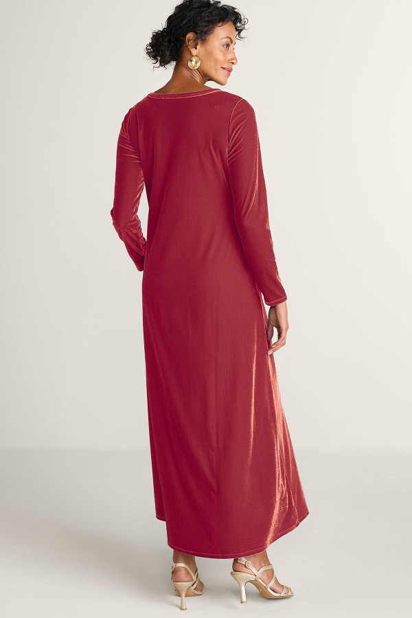 Relish the sophistication of velvet in our iconic Santiago maxi dress. Long sleeves to keep you cozy through the cold with elegant drape and a modest scoop neck.
