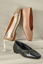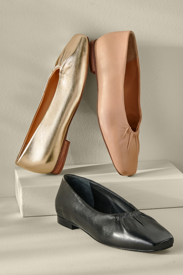 We like to call these flats with flair. in You have your traditional ballet style, but with little added bits of elegance. See that gathered topline? Subtle but chic. And that snipped square toe? Different than the standard round- or pointed-toe you're accustomed to. And of course, for comfort, the footbed is cushioned just right. 1/2" heel.