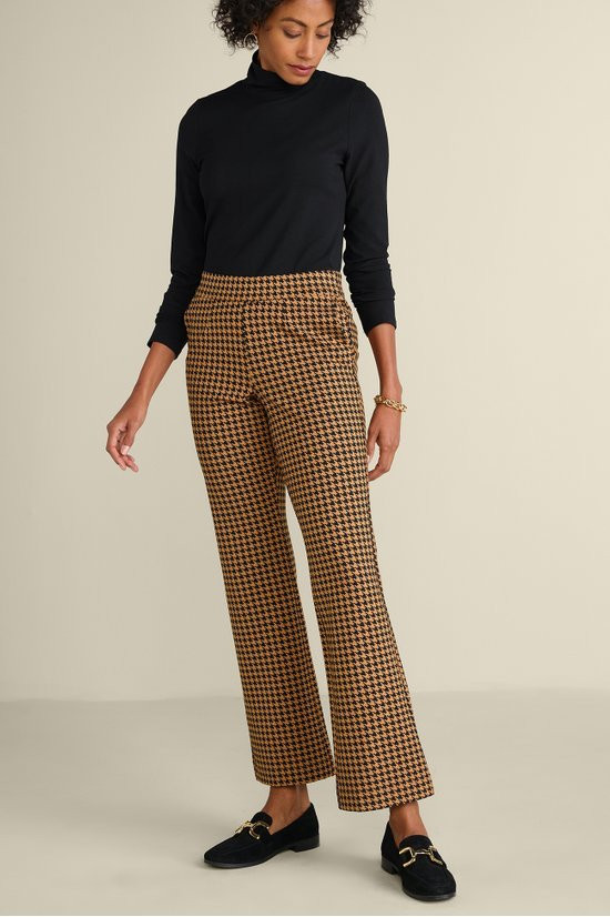 Fall's essential silhouette, the bootcut pant, is better than ever in our gently sculpting ponte fabric. A smoothing tummy control panel shapes and slims your curves, while the stretchy fabric offers comfort from desk to dinner to destination getaway. Full elastic waist, front slant pockets, single back welt pocket.