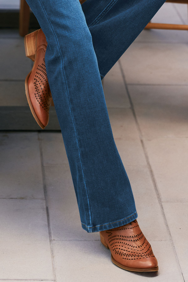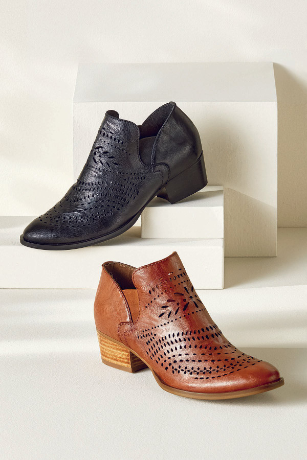 With intricate cutwork at the upper, these pointed-toe leather ankle booties offer artful sophistication in an effortless slip-on style. Twin elastic gores ensure a comfortable fit, while the 1.5" heel and flexible TPR sole provide all-day comfort with every step.