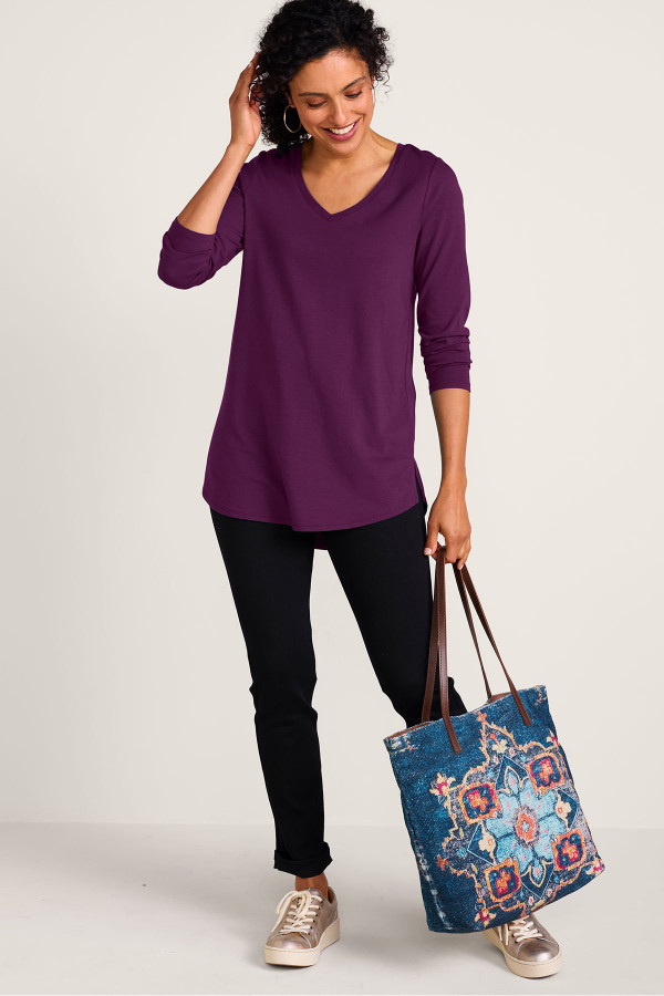 Pima is softer, stronger and smoother than standard cotton. Just a few reasons you'll love this tunic. A few more? The V-neck is flattering, the long sleeves are versatile and the subtle high-low hem keeps you covered. Wear as is, layered over or under something, dressed up and down... it's a closet classic you'll want to keep around.