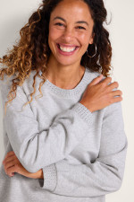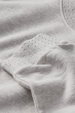 Our rhinestone French terry sweatshirt adds a touch of sparkle to your casual wardrobe. The rhinestone accents at the crew neckline and long-sleeve cuffs subtly shimmer, while the boxy, relaxed fit pairs easily with jeans or joggers for everyday comfort. Side slits create flattering movement and drape. Soft midweight French terry fabric delivers warmth without the bulk, making this sweatshirt just right for layering or wearing solo during transitional weather.