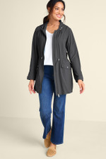 There's more than meets the eye. It packs into its own left pocket when the clouds part to reveal sunny skies. Lightweight and season-spanning, the two-way zipper, snap flap pockets and side zippered pocket make it a weather-or-not outdoor essential. Get the just-right fit with the adjustable hood and cuffs and shaping drawstring waist.