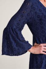 Stretch Lace 3/4 Slv V Neck Short Dress