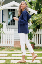 Elegantly finished with gold buttons at the hem, these sleek pull-on crop pants are made from a phenomenal stretch fabric that slims and shapes. A flat waistband and mesh-knit tummy panel combine comfort and subtle shaping. Front angled pockets, decorative back welt pockets. Sits at natural waist.