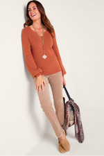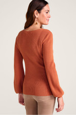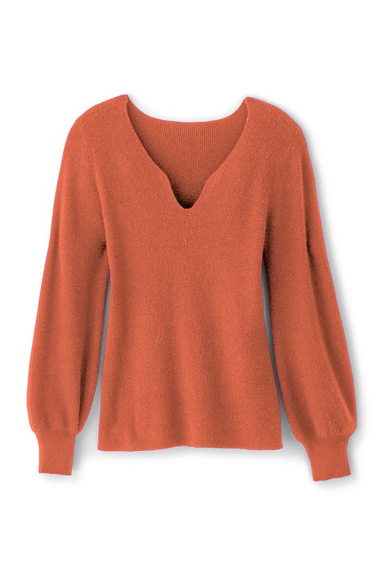 Everything about this sweater is so fresh, so now. It starts with a super-soft, micro-rib knit for the perfect touch of texture. The curved, split V-neck is so flattering, while blouson sleeves with slim ribbed cuffs bring all the drama.