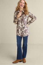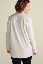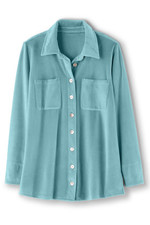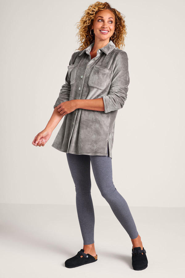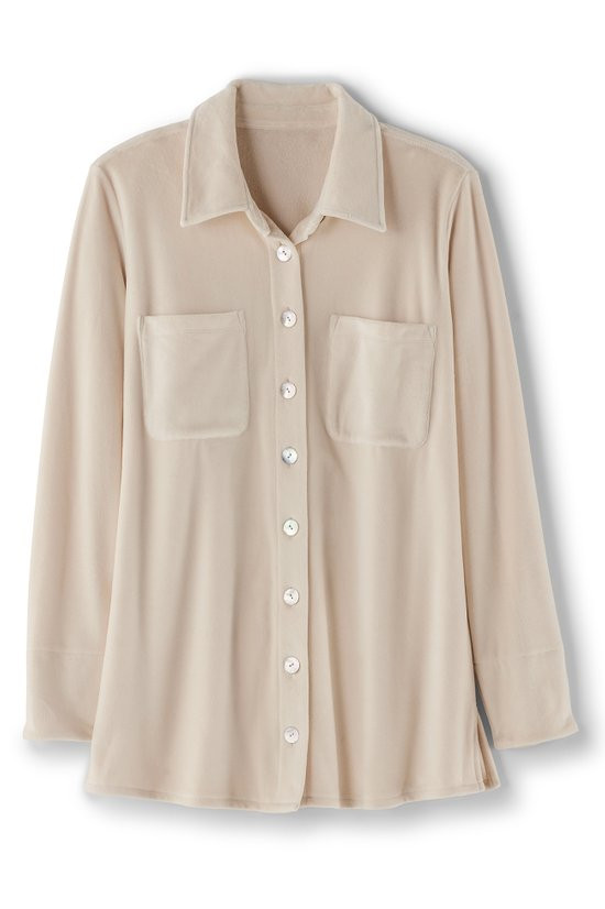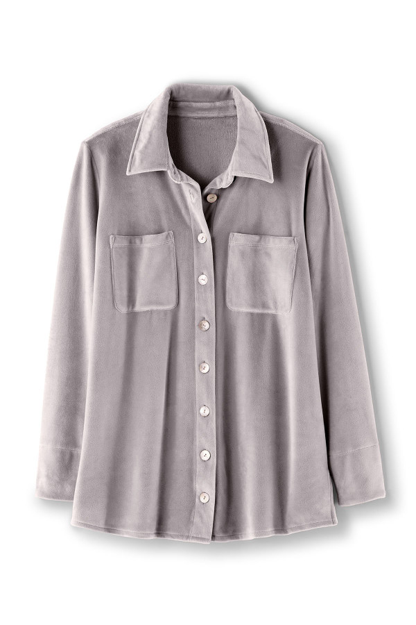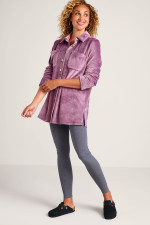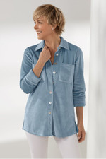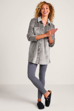 This plush hug of a shirt is crafted of faux micro-mink with coverstitched seams and a flowy, straight hem with side slits.