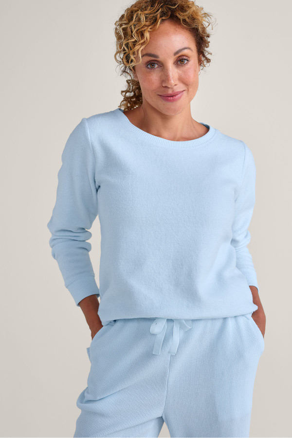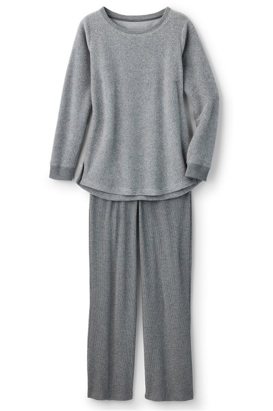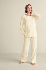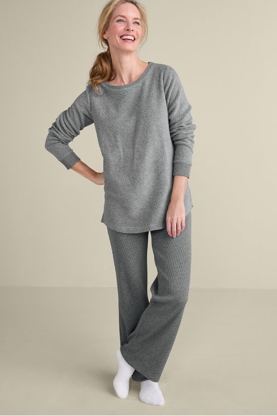 Delight your senses with a mix of textures. Start with a sumptuously soft Sherpa top, add luxe velvet accents and finish with an oh-so cozy thermal, pull-on drawstring pant. Wear them to sleep or any time you want a little comfort. Sits at natural waist.